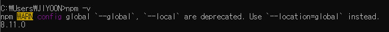 cmd 창에 npm -v 를 입력한다. 아래 버전이 뜨면 정상적으로 설치 완료된 것이다.