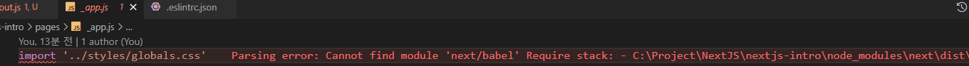 extends에 next/babel을 추가시키면 Parsing error가 사라진 것을 확인할 수 있다.