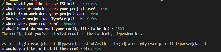 설치과 완료되면 root폴더에 .eslintrc.json 파일을 생성하거나 커맨드 창에