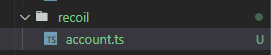 recoil폴더 내에 필요한 상태 값을 저장할 .ts 파일을 생성하고, 아래와 같이 예시로 작성한다.